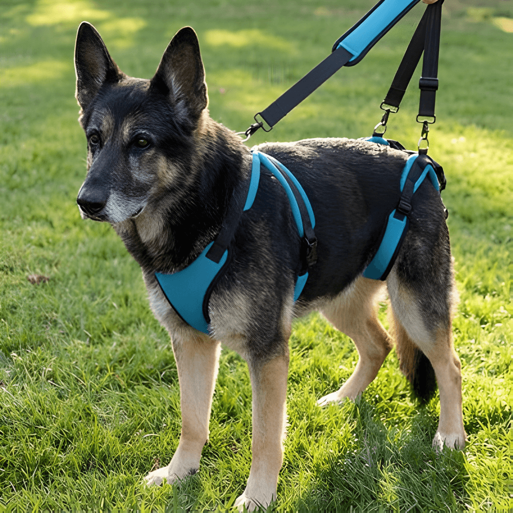 PfotenLift™ verfügt über vordere und hintere Haltegriffe für umfassende Mobilitätsunterstützung, vollständig verstellbare Gurte für Hunde von 3–60+ kg, atmungsaktives Mesh-Material zur Vermeidung von Überhitzung sowie verstärkte Nähte für maximale Haltbarkeit. Das Geschirr wird von Tierärzten empfohlen und wurde speziell für Hunde mit Arthritis, Hüftdysplasie, schwachen Hinterläufen oder in der Erholungsphase nach Operationen entwickelt. Die gepolsterten Gurte sorgen auch bei längerer Nutzung für hohen Tragekomfort, während die ergonomischen Griffe deinen Rücken entlasten.